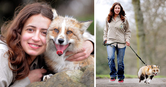 After being rescued as a young fox cub, Todd the 11-month-old fox is getting along just fine as a domestic pet together with his owner, Emma D’Sylva.