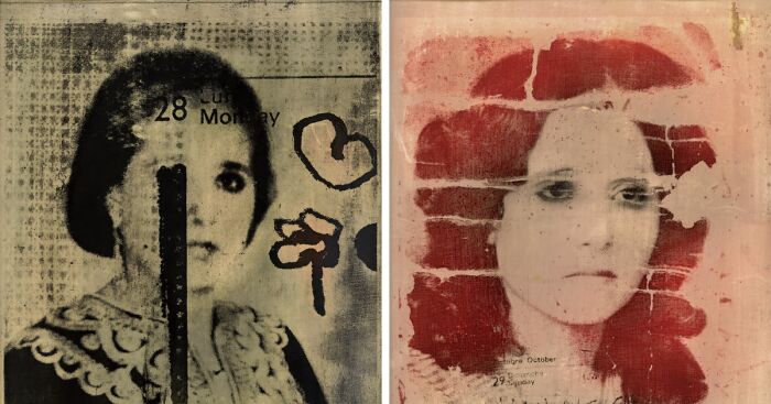 In making “My Mother! ‘s Tender Script,” I transformed a black-and-white print from the late 1970s into an enlarged negative. I infused her delicate drawings and writings from the phone notebook, seamlessly incorporating them before employing the resino-pigmentype technique, invented in the mid-nineteenth century.