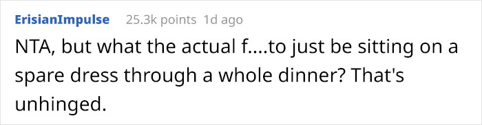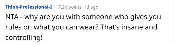 Once both of them were at home, the husband said that the OP could’ve worn the dress and not made a scene, but she said that he disrespected her choices and implied that she was an embarrassment.
