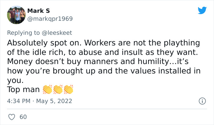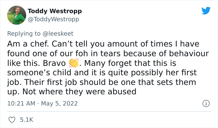 In his now-viral tweet, he explained how he taught the rude clientele a lesson by banning them and giving their money to the 22-year-old front of house employee