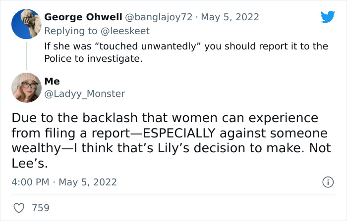 In a follow-up post, he also expressed how proud he is of Lily for keeping up a high level of class and integrity