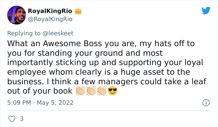 As for reactions, folks praised Skeet for being a good boss, agreeing that the way he handled the situation as it fit the inappropriate way the clientele handled itself.