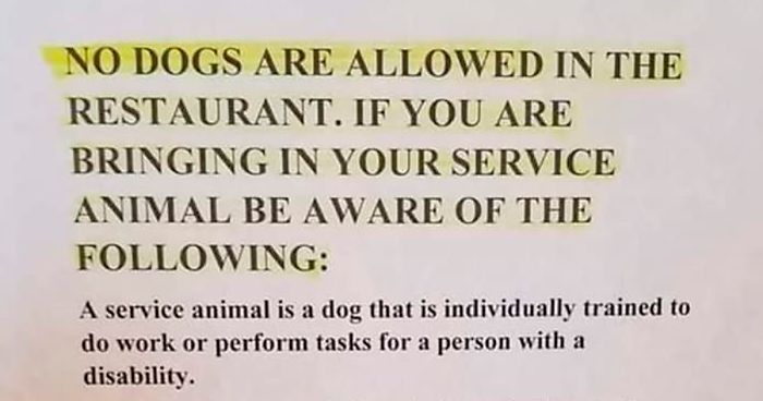 Recently, one restaurant put up a sign, saying it doesn’t allow emotional support animals. It caused quite a stir online, with some people admiring the bold move and others saying it’s not something the restaurant has control over. However, there’s something we need to discuss before you choose whose side you’re on.