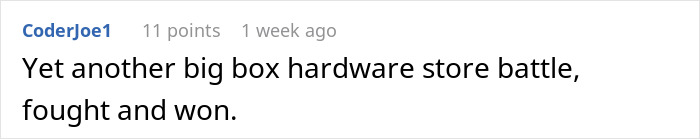 We were curious about what the OP’s first reaction was when he realized that the customer started getting angry at him about the sign. “I honestly thought it was hilarious when he got mad and said he would go to Lowe’s specifically for a color match of a Home Depot branded sign that was bolted to the counter,” he told Bored Panda.