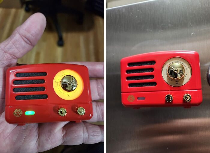 Review: "This bluetooth speaker is very cute, and the bluetooth connects to my phone easily. I did not like the sound at first, then realized it must be played on the refrigerator! It sticks with magnet, and sounds amazingly loud!