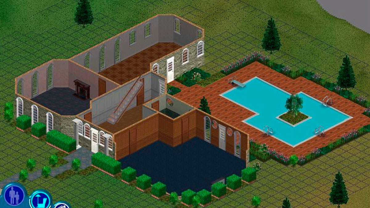 Screenshot of "The Sims" from 2000, showcasing early 2000s retro tech gameplay with an unfinished house design.