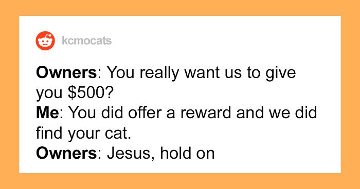 Load More Replies...I would be ashamed of myself if I offered an reward and then tried to weasel my way out of paying it. The owners had no clue if they really needed the money and spent hours looking for the cat just to be able to pay things like medical bills etc.