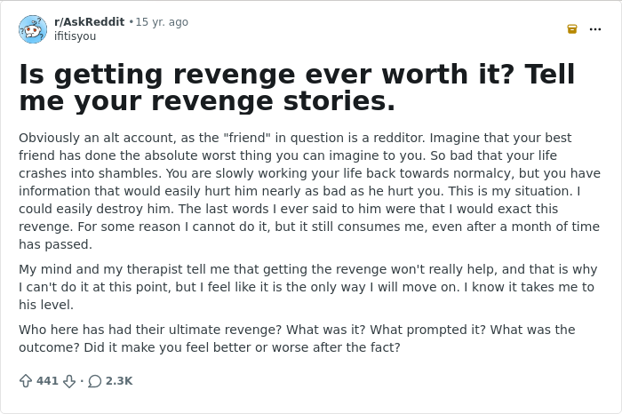 Revenge can feel awesome.