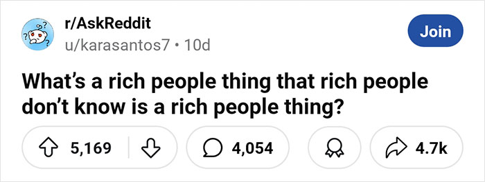 Redditors have been discussing privileges that wealthy people don’t even realize are “rich people things,” so we’ve gathered some of their replies down below. From flying first class to having a maid, these are luxuries that most of us could only dream about. So enjoy scrolling through, and be sure to upvote the things that you find the least relatable!