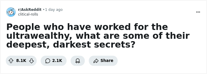 Someone online posed the question: “People who have worked for the ultrawealthy, what are some of their deepest, darkest secrets?” And the answers did not disappoint. From being unbelievably cheap to wildly inconsiderate, these behind-the-scenes confessions pull back the curtain on what life is really like around extreme wealth.