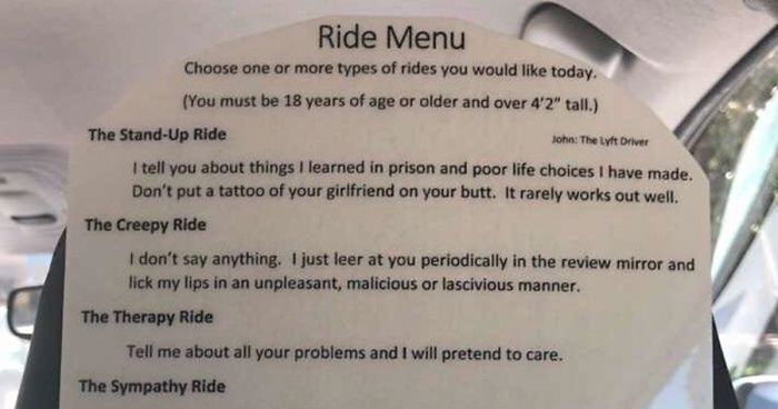 This Lyft Driver Is Taking His Services To A Whole Different Level And Offers Customers A Ride Menu