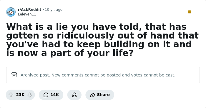 Load More Replies...This is a really cute story but I have trouble with the idea that it would be hard to admit the lie later. Am I weird in this? They were just a kid at the time, at age 20 or so if you still hang out with this online group I think it would be easy to go, "So funny story guys, when I was 13....."