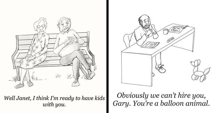Most of the time, Sarah uses a single panel to deliver her humor—often with a clever twist or unexpected punchline. In an interview with Bored Panda, Sarah shared that it was only last year she decided to take her comics more seriously after buying an iPad and starting an Instagram account. She wrote: “I had this theme in mind, 'The Secret Lives of Socks.' Since starting, I've expanded my scope beyond socks and their sneaky secrets, but it's still a fun theme I return to.”