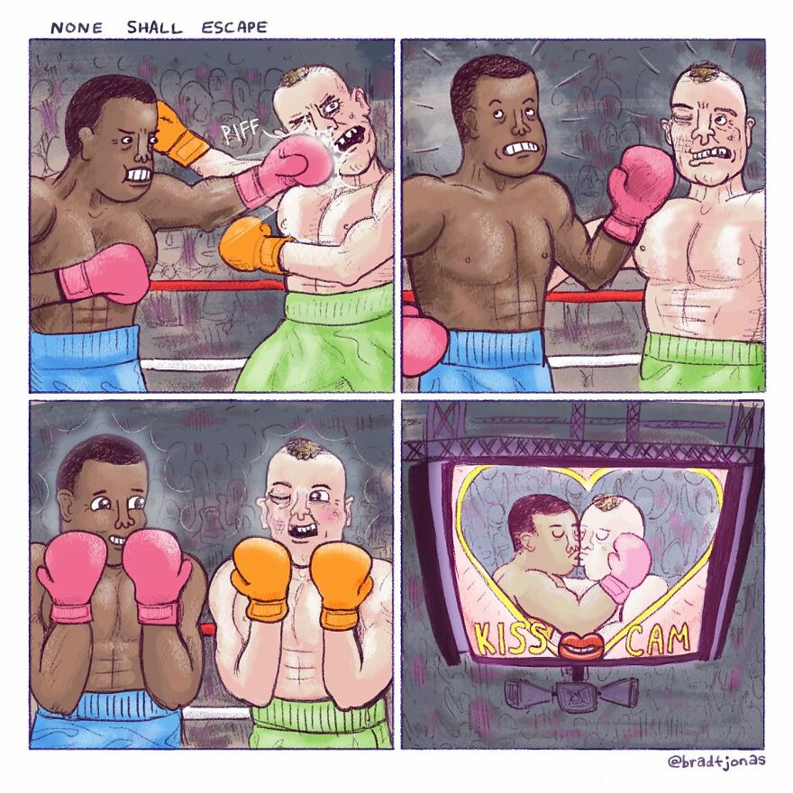 “A lot has changed! A lot more things are on fire, it seems like. I think maybe Trump got assassinated? With me, things are essentially the same, though. I still wake up every day and feel some inexplicable compulsion to draw things and share them with the internet. I’m a little older, and my jaw hurts more than usual at the moment because I got hit in the face by a random shirtless dude with a pitbull in the park the other day,” wrote Brad.
