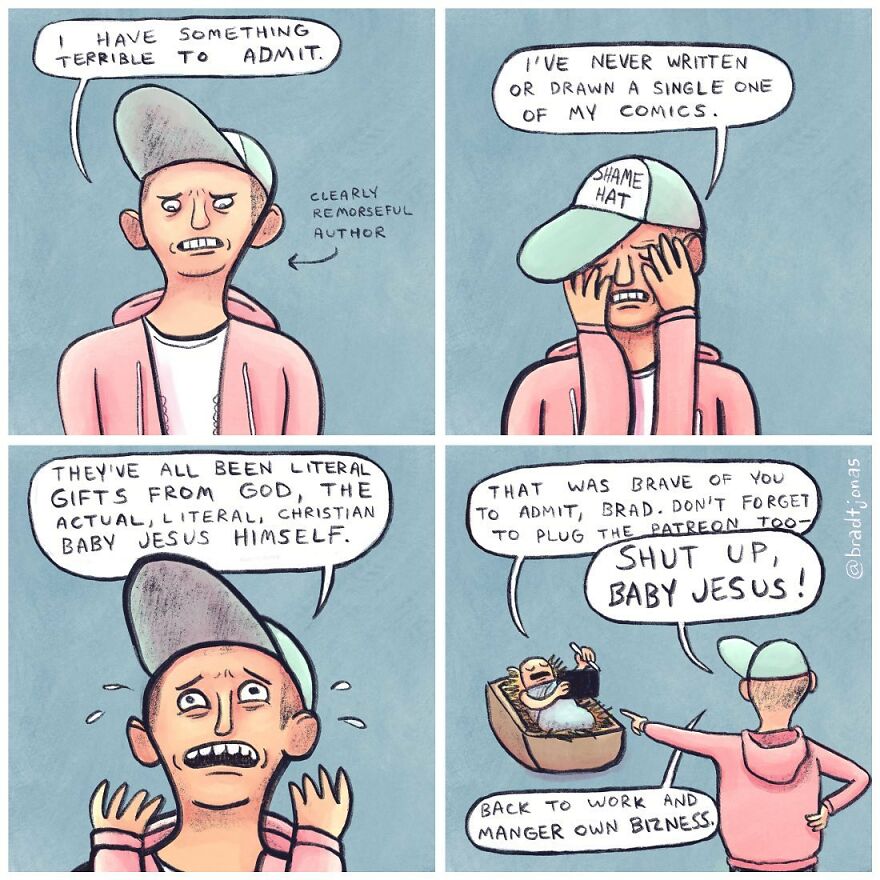 And lastly, Brad added: “I am so grateful to anyone who reads my comics. Even more so to those who leave comments and likes and all that. And if you subscribe to my Patreon, I owe you a whole friggin' hug and a half, and a heartfelt sob from a mysterious stranger at your funeral. I hope these comics help someone, in some capacity, and that I can manage to keep doing them for a while. I'm really grateful for this lil feature too, hoo dang. Thanks for looking at anything I ever drew!”