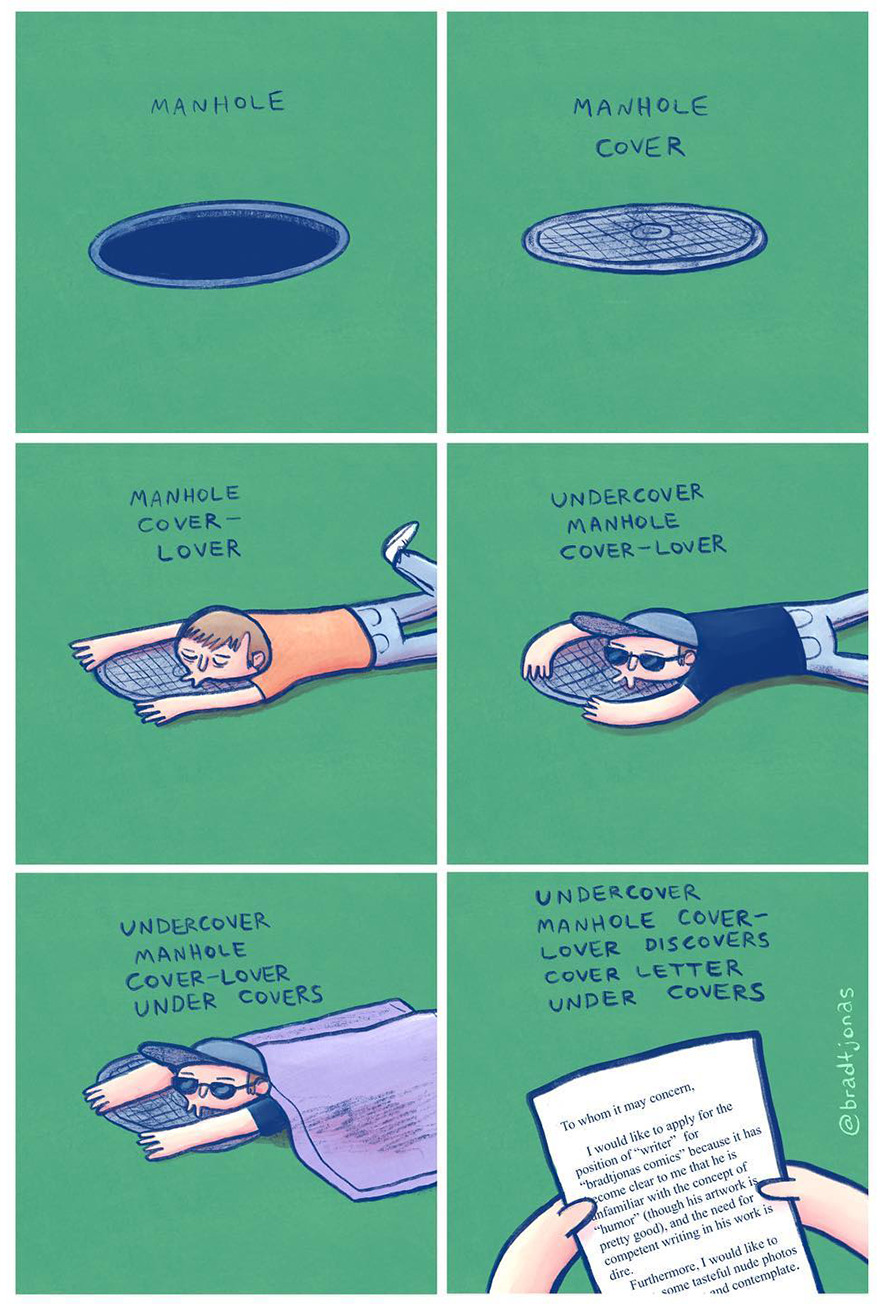 Brad also shared what he would like for people to take away from his comics: “I would like people to laugh at my work. Or at least feel better after reading my comics than they did before reading them. Or if they feel worse, I'd like them to ultimately feel better after ruminating on it for a bit... if that makes sense. I don't know. I would like my compulsion to doodle these things to not be for naught, but I can't really seem to help doing it regardless, so sorry if any of them make your life worse.”