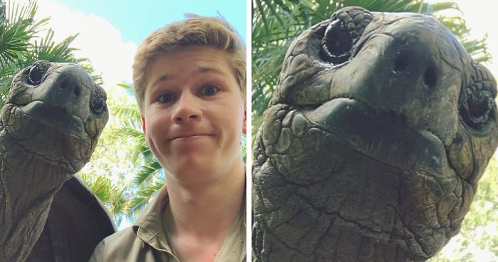 Crocodile Hunter Steve Irwin’s 16-year-old son Robert recently shared an adorable selfie with a tortoise named Igloo
