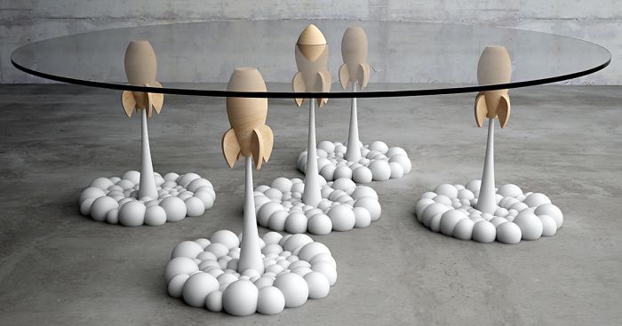 Stelios Mousarris created this rocket coffee table design inspired by his childhood nostalgia