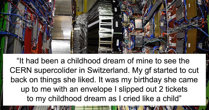 I've always had a passion for astronomy and it had been a childhood dream of mine to see the CERN supercolider in Switzerland. My gf not being much scientific herself didn't understand the beauty of such technology (she's an English teacher), started to cut back on expenditure on things she liked for a couple of months. I occasionally offered some financial support but she always kissed me saying there's nothing to worry about and so like any partner I worried my a** off. Some months passed it was nearing my birthday. I hadn't seen my gf all day as she went to work yet she arrived late. She came up to me with an envelope and simply sat besides me anticipating my reaction.