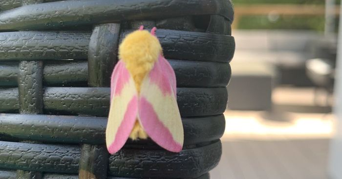 On May 21, Lavoie shared a photo on her Twitter feed with a caption that read “This moth exists in nature and it’s ON MY DECK.” The image showed a beautiful yellow-and-pink moth that’s the complete opposite of the most common types we see around. When you think of the word “moth,” you usually picture a little grey fella that flies into the light at night. Not an exotic-looking being that looks like a ball of yellow cotton.