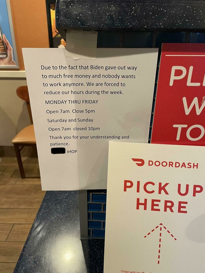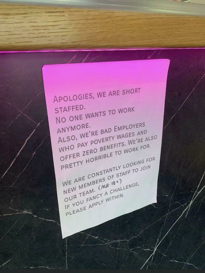 I Bet It’s Posted Right Next To A Sign Complaining That No One Wants To Work Anymore