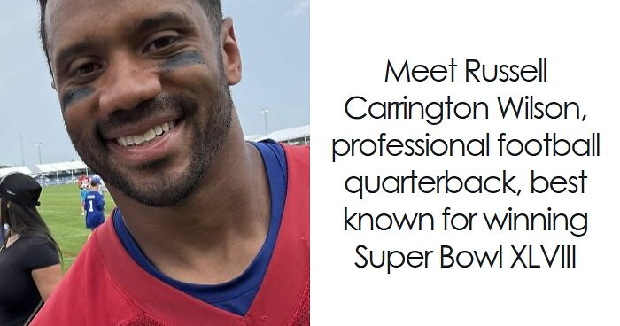 Russell Carrington Wilson is an American professional football quarterback, recognized for his exceptional leadership and dual-threat playmaking ability. He commands the field with both his arm and his legs.