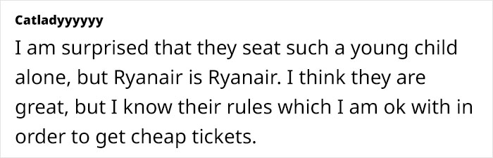 Ryanair’s policy states that kids under 12 should be seated next to an adult but, apparently, company policy was just a suggestion in this case