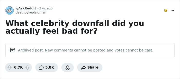 Redditors have been recalling some of the most tragic celebrity downfalls, so we’ve gathered their heartbreaking stories below. From stars that lost their battle with depression to talented artists who were absolutely destroyed by tabloids, these tales might make you extremely grateful for your quiet, private life.