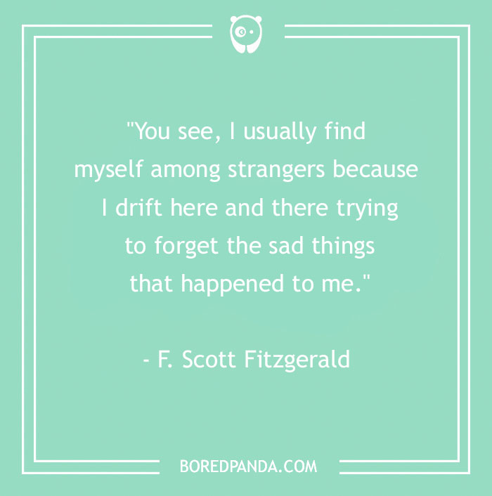 "You see, I usually find myself among strangers because I drift here and there trying to forget the sad things that happened to me." - F. Scott Fitzgerald