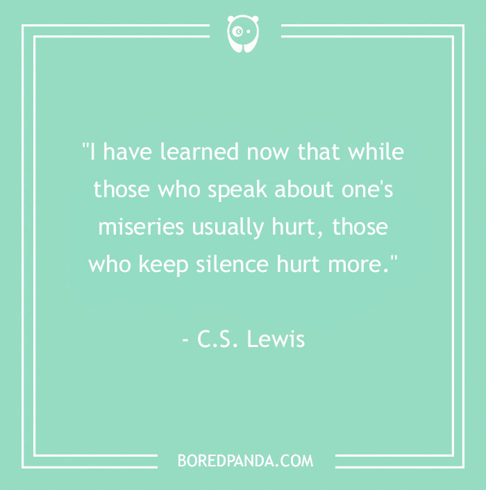 "I have learned now that while those who speak about one's miseries usually hurt, those who keep silence hurt more." - C.S. Lewis