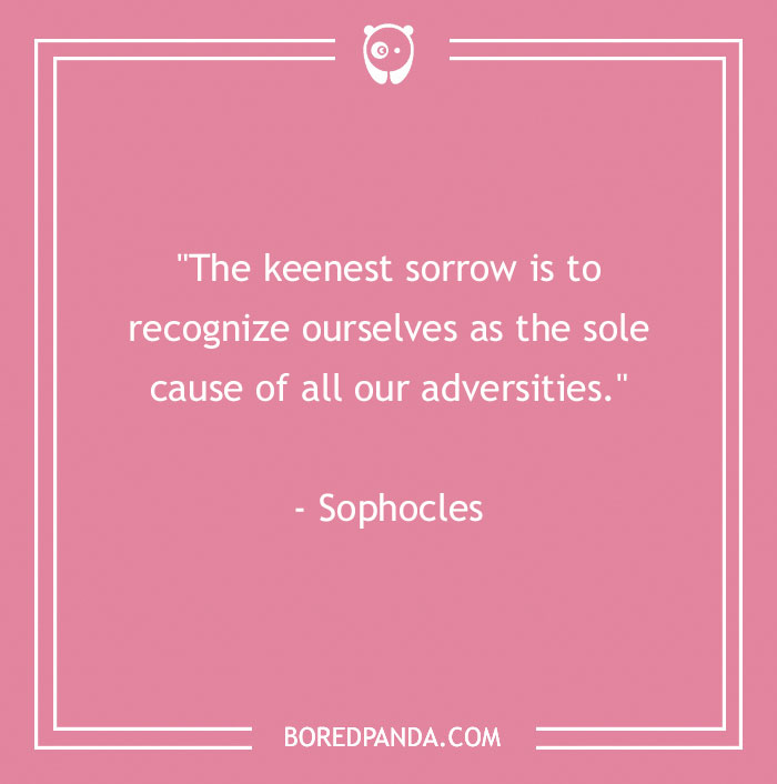 "The keenest sorrow is to recognize ourselves as the sole cause of all our adversities." - Sophocles