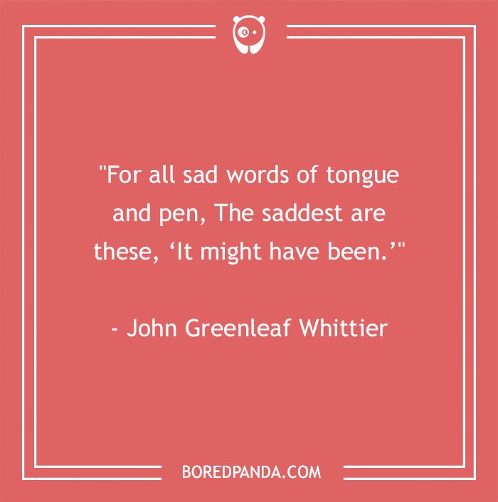 "For all sad words of tongue and pen, The saddest are these, ‘It might have been.’" - John Greenleaf Whittier