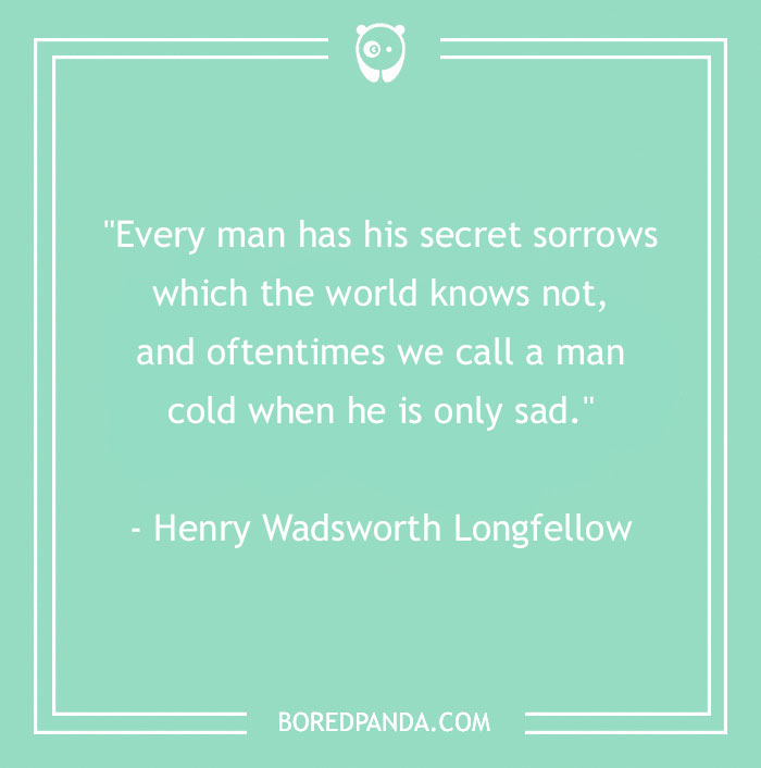 "Every man has his secret sorrows which the world knows not, and oftentimes we call a man cold when he is only sad." - Henry Wadsworth Longfellow
