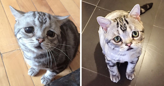 Luhu lives together with two older tabby cats, Barher and Bardie, in Beijing. They all share the same parents, but Luhu’s the only one that looks as sad as she does. Their owner, Maggie Liu, loves to share photos of them all on Instagram, so be sure to follow her!