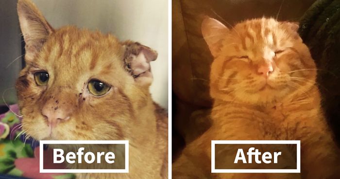 As soon as the cute cat arrived at their home, he made an incredible transformation just within an hour! “He was instantly full of purrs, smiles, and ‘thank you’ cuddles, ” says the owner. “I like to think he knew he was safe and had his forever home at that moment.”