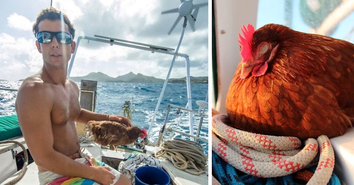 24-year-old Guirec Soudée took a chicken on his sailing trip around the world hoping she’ll lay him eggs