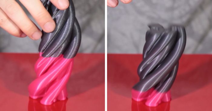 Devin Montes from Make Anything has 3d-printed colorful twist containers, and the way they operate is a pure eyegasm. “All these designs are basically an iteration of the same concept,” Devin said. “The idea is that I have a container with an inner and outer shell, and it’s extruded and twisted together. So these containers are essentially are thread together, but the thread itself is what makes the design of the piece.” They open and close really smoothly because the gap between the layers creates a perfect cushion of air.