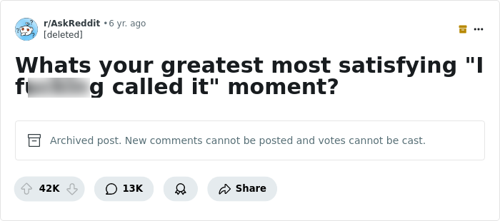 Load More Replies...My worst "I knew it" moment was when I predicted the s*****e of my mother's colleague. I was driving home with my father and we saw a train stopped on the bridge overhead. I said "the train's stopped because Ms G jumped in front of it." Dad told me not to be morbid. Got home and the phone rang. "That's Mr. S, calling to tell Mom that Ms. G's killed herself." I hope I never have another "called it" moment like that one.