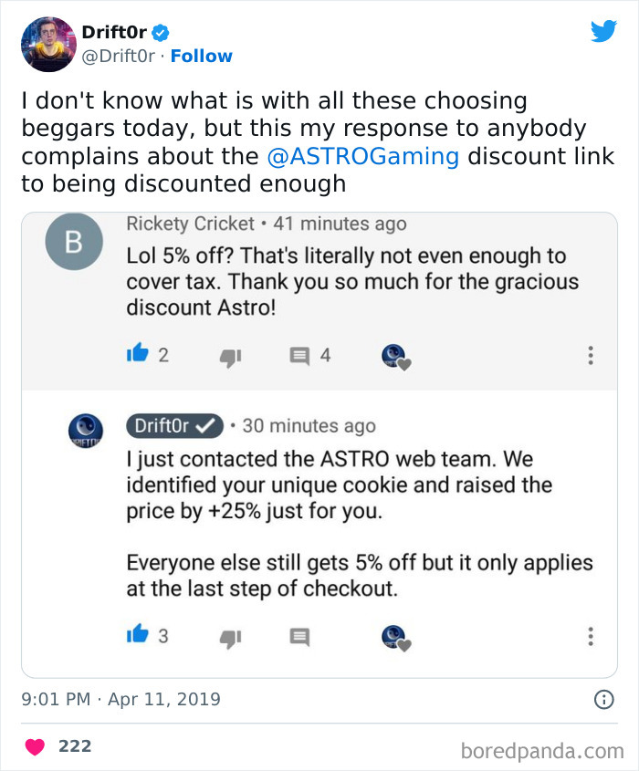 The subreddit '[Jerk] Tax' has plenty of these satisfying examples. According to its 'About' section, the online community is devoted to "stories of customers being charged more, through skipped discounts or other methods, when they have deserved it for infractions such as being rude, demanding, or otherwise a pain."