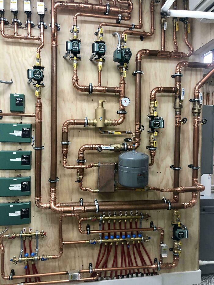 Wow! I wish the idiot who had organised the water pipes for our building could see this! Only 12 apartments, and they still couldn't even get the meters installed in any kind of numerical order, plus some are randomly stuck on another wall, despite plenty of space.
