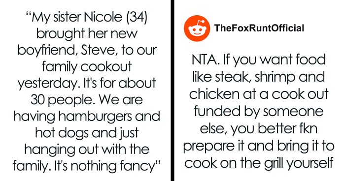 Now let’s get a bit serious. The author of our story today, the user u/Silly_Emu9279, recently hosted a family cookout, to which his sister brought her new boyfriend, “Steve” (hmm, the second Steve in just two days… Gentlemen, if your name is Steve too, please refrain from any rash actions in the next couple of days! Thank you!) So, for Steve, this was the first meeting with the woman’s fam.