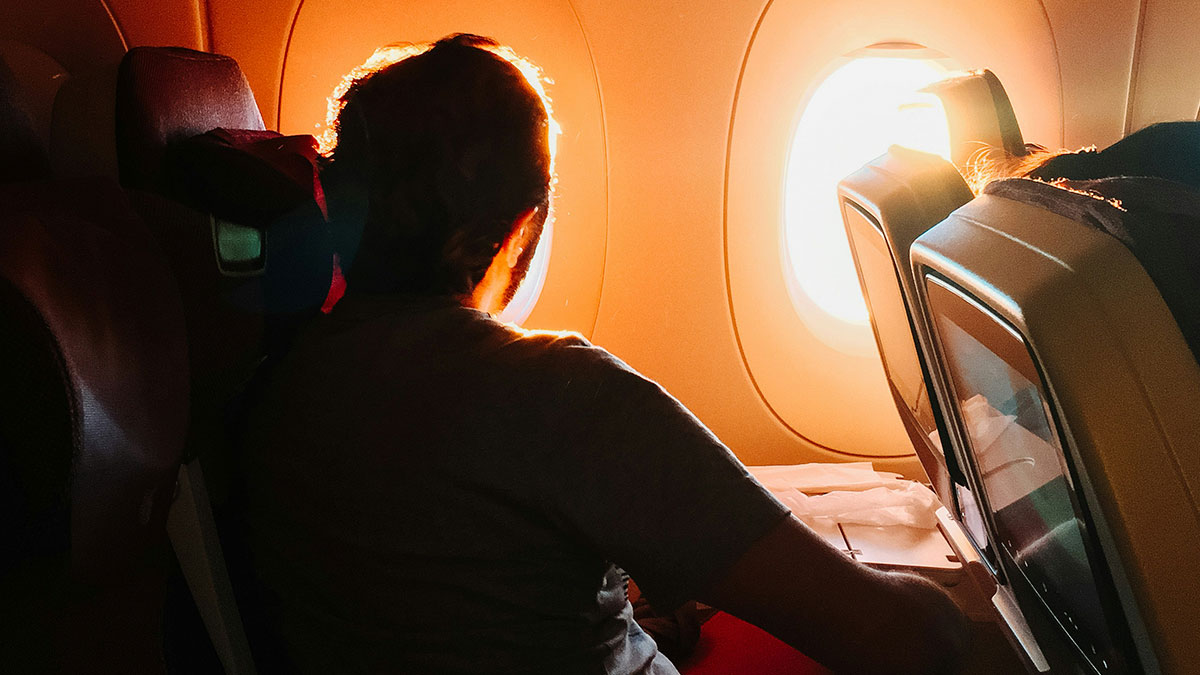 The entire flight, we don’t say a word. But he does give me a funny look when I ask for a beer to drink.
