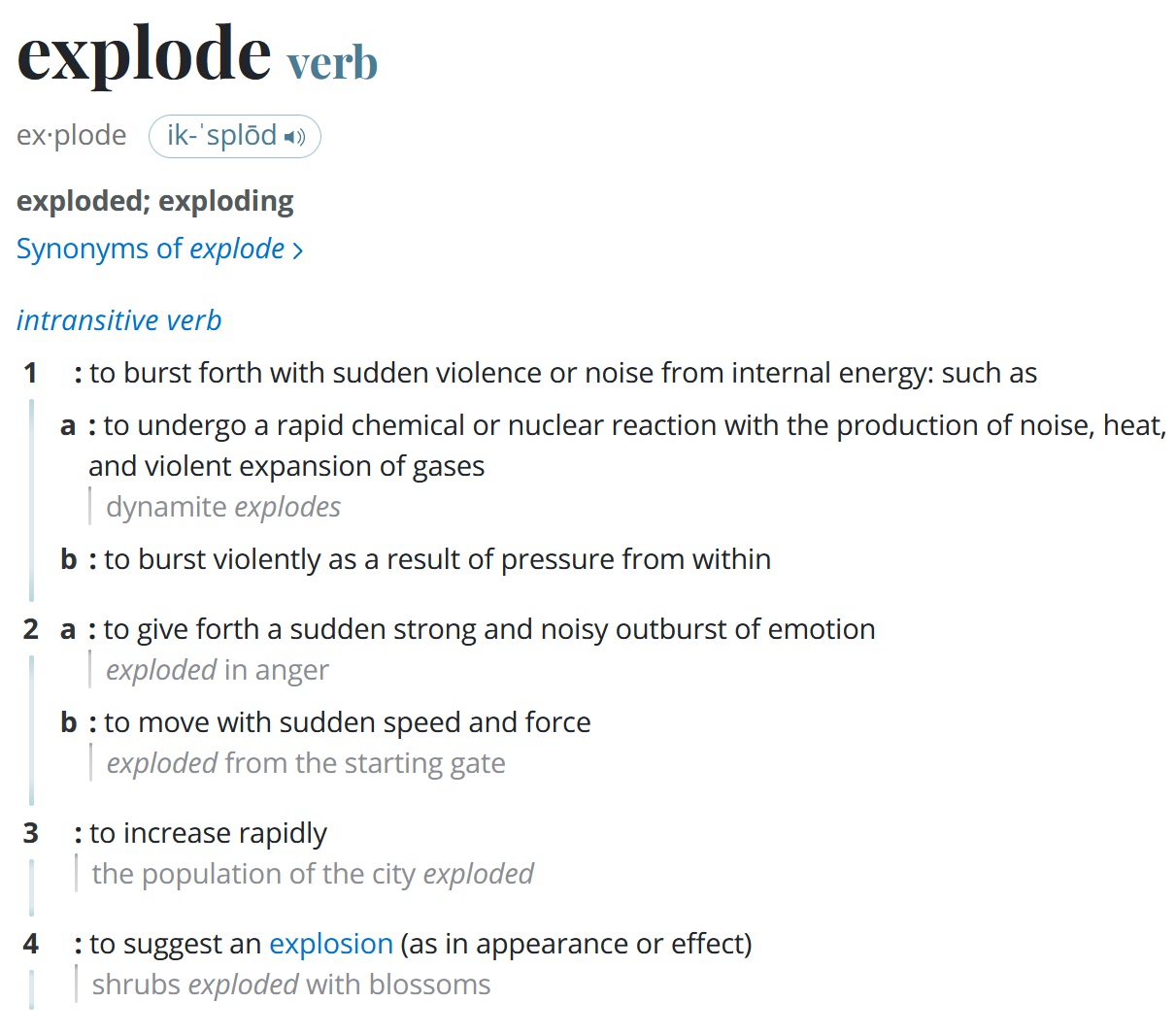 Yeah, I hate when people use the word "explode" incorrectly. It's becoming a trend and it bugs me.