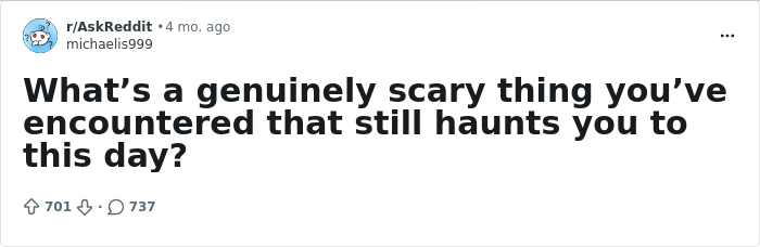 Internet users who experienced genuinely scary, creepy, and weird things opened up about the most chilling stories that continue to haunt them in these two online threads. Today, we’re featuring some of the most terrifying things they encountered. Keep scrolling if you want to get spooked.