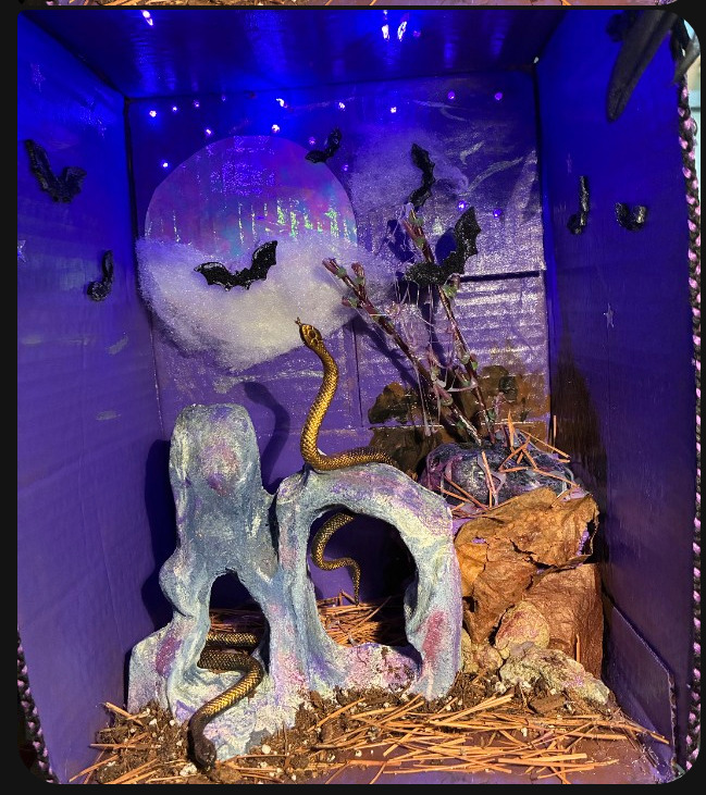 The top three were announced today (I made top 3!) with the winner will be announced on Halloween. I worked SO hard on this monster, so although it doesn’t look like much in terms of decor, I really poured my heart into this piece. I’ve never crafted anything to this scale before (it’s approx 8 ft long) and I’m super proud of how she turned out. It took many hours and long nights to get her finished in time.