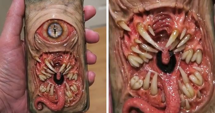 Ever had your phone stolen? Then get one of Morgan Loebel’s phone cases. It’s not exactly something somebody would like to take away from you. They won’t even want to touch it! An artist and a dental technician from Kansas, U.S, Loebel creates monstrous phone cases with an element of gore that could only come from a dentist – he decorates his cases with hyper-realistic recreations of crooked, sharp teeth, lots of human flesh, gum, and terrified eyes. Have a thing for scary accessories? Check his Instagram and Etsy shop for more!