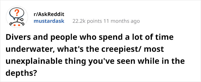 But the fear of ocean depths is not completely irrational. Because when someone asked the divers and dear people on Reddit who spend a lot of time underwater to share “the creepiest and most unexplainable thing you've seen while in the depths?” it wasn’t fun.