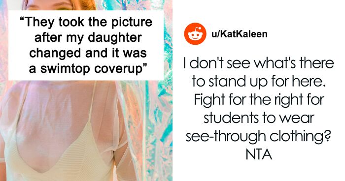 Load More Replies...School dress codes are often too strict toward teenage girls, especially when they have rules like no form fitting pants because the shape of girls' legs is inherently sexual etc. This is not one of those rules. This is totally reasonable, and the school treated her fairly. 15 year olds don't need to go to school wearing tops a 21 year old would wear to a club. Remind your daughter that she won't be allow to go to work in a bikini top either or that the boys at her school can't show up in boxers with no pants. Yes, there are lots of unfair modesty standards towards girls and women, but this is not one of them.