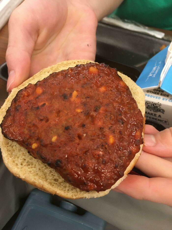 School Lunch Is A Beautiful Thing. Real-Life Mystery Meat. It Was Supposed To Be A "Burger"