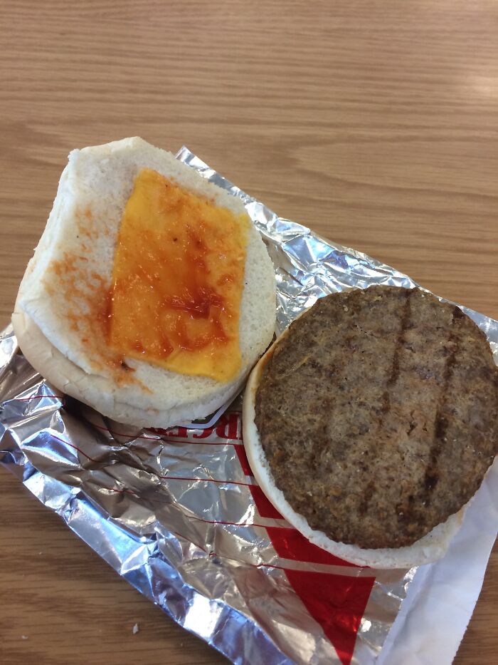 My Kid's School Lunch Today. Pancake Sausage Burger With Cheese